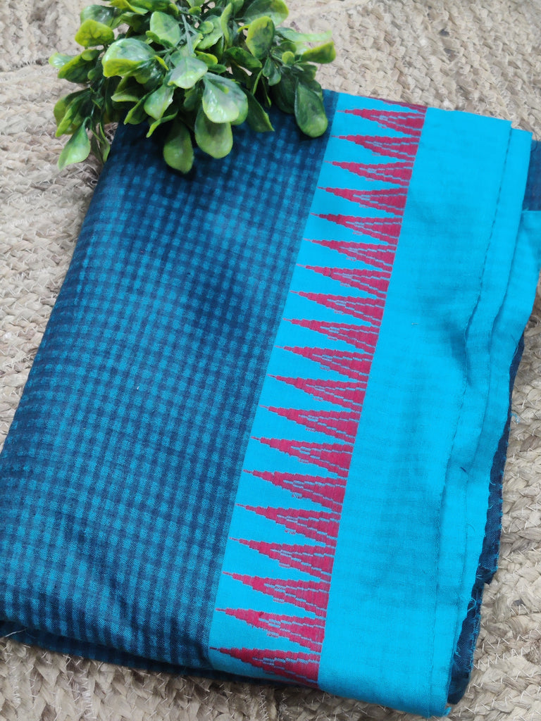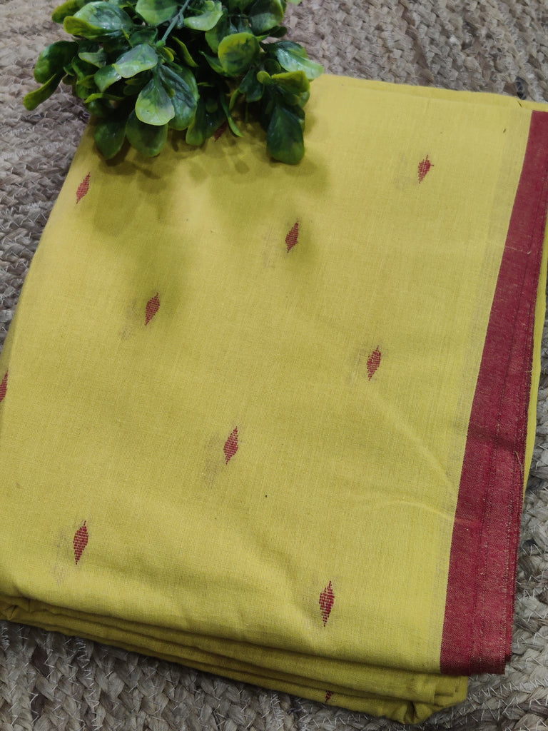 Go bold and graceful with this South Indian handloom! Richly inspired by the tribal designs, this fabric will turn heads with its bold colors, plain body, as well as the striped and zari embellishment on the pallu and border. This fabric has travelled all the way from the tinsel town Mangalgiri, located in Andhra Pradesh.